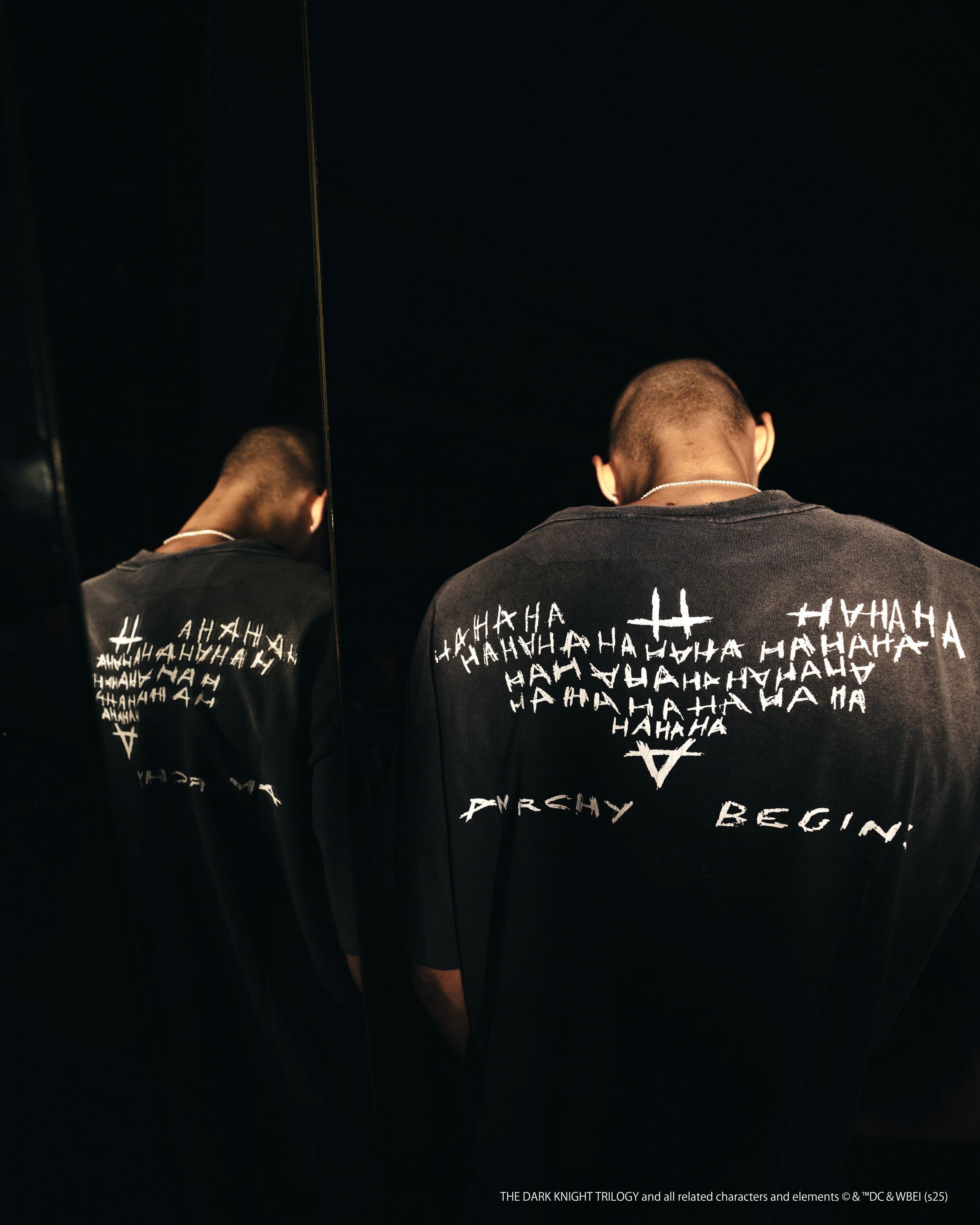 ©SAINT Mxxxxxxと『The Dark Knight』との特別なアイテムを5月3日(土)より発売いたします。劇中でも見る人に深い印象を与えた”ヒース・レジャー”演じる”The Joker”のポスタービジュアルをピックアップし、TEEシャツに落とし込みました。アイコニックなデザインにリアルなヴィンテージ加工を施し、©SAINT Mxxxxxxらしさを加えた特別なアイテムとなっております。