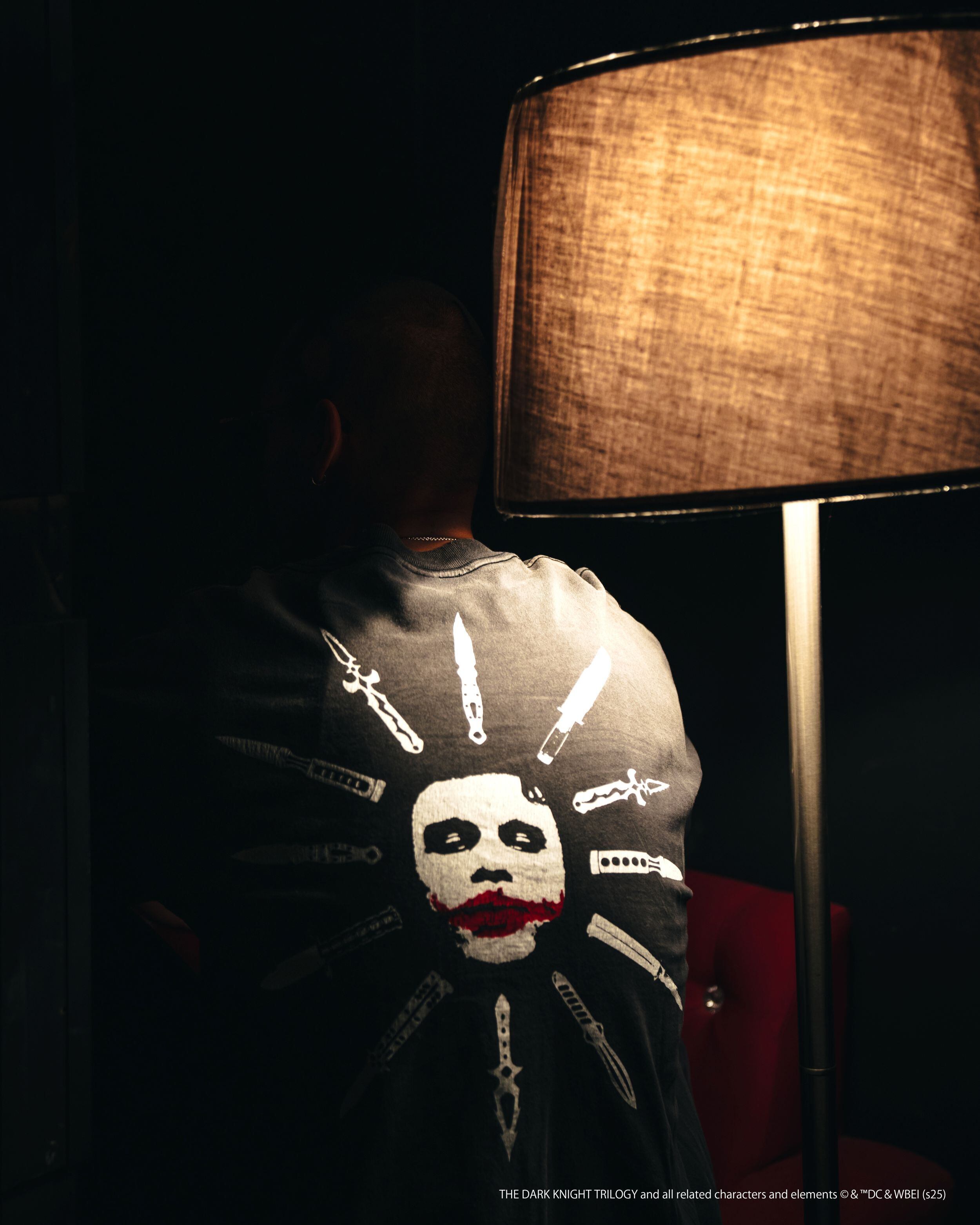 ©SAINT Mxxxxxxと『The Dark Knight』との特別なアイテムを5月3日(土)より発売いたします。劇中でも見る人に深い印象を与えた”ヒース・レジャー”演じる”The Joker”のポスタービジュアルをピックアップし、TEEシャツに落とし込みました。アイコニックなデザインにリアルなヴィンテージ加工を施し、©SAINT Mxxxxxxらしさを加えた特別なアイテムとなっております。