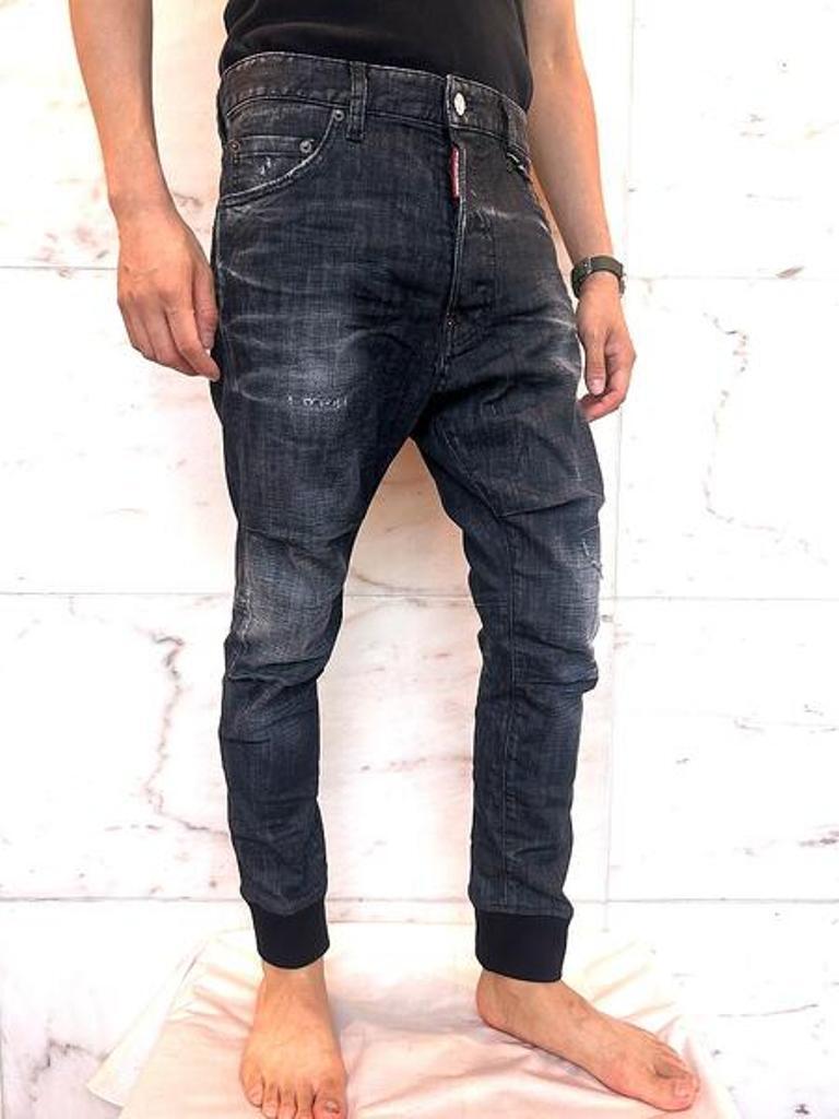 ●テンションの効いたストレッチデニムを使用し、ウエストはイージー仕様のスピンドル入り、裾にリブを取り入れたトラックデニムパンツ。あらゆるスタイリングに適応可能なD2スキニーなシルエットでモードなスタイリングからカジュアルなテイストまで色々なシチュエーションに合わせられるディースクエアード版ジョガージーンズ。ワンサイズアップでの着用をお勧め致します!!