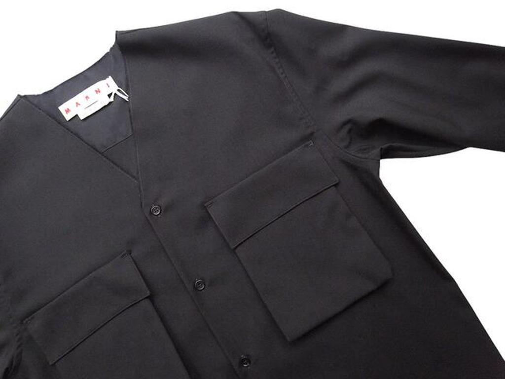 MARNI(マルニ) 【BLACK TROPICAL WOOL COLLARLESS OVERSHIRT】 ブラックトロピカル ウール ノーカラー シャツ★