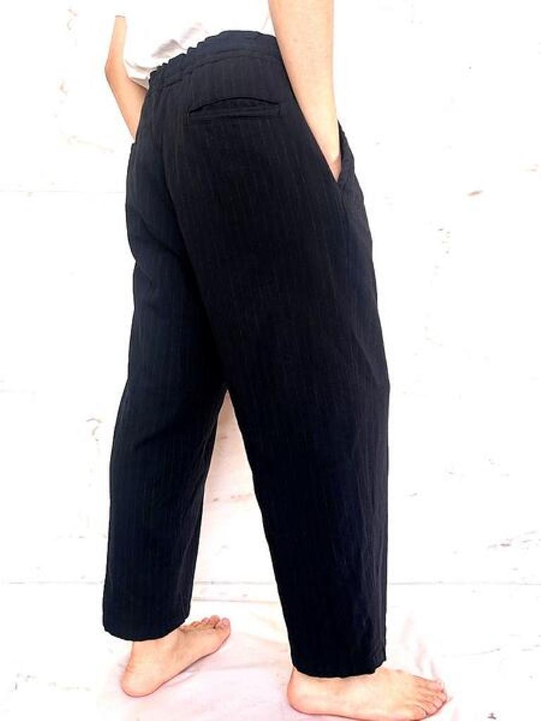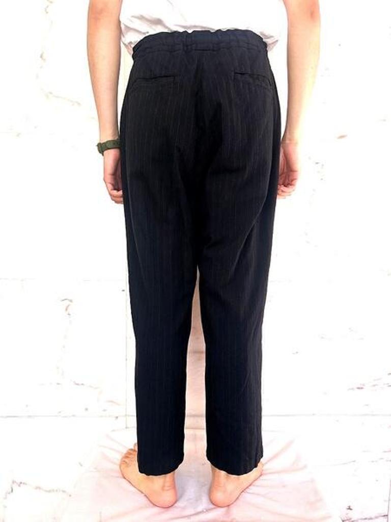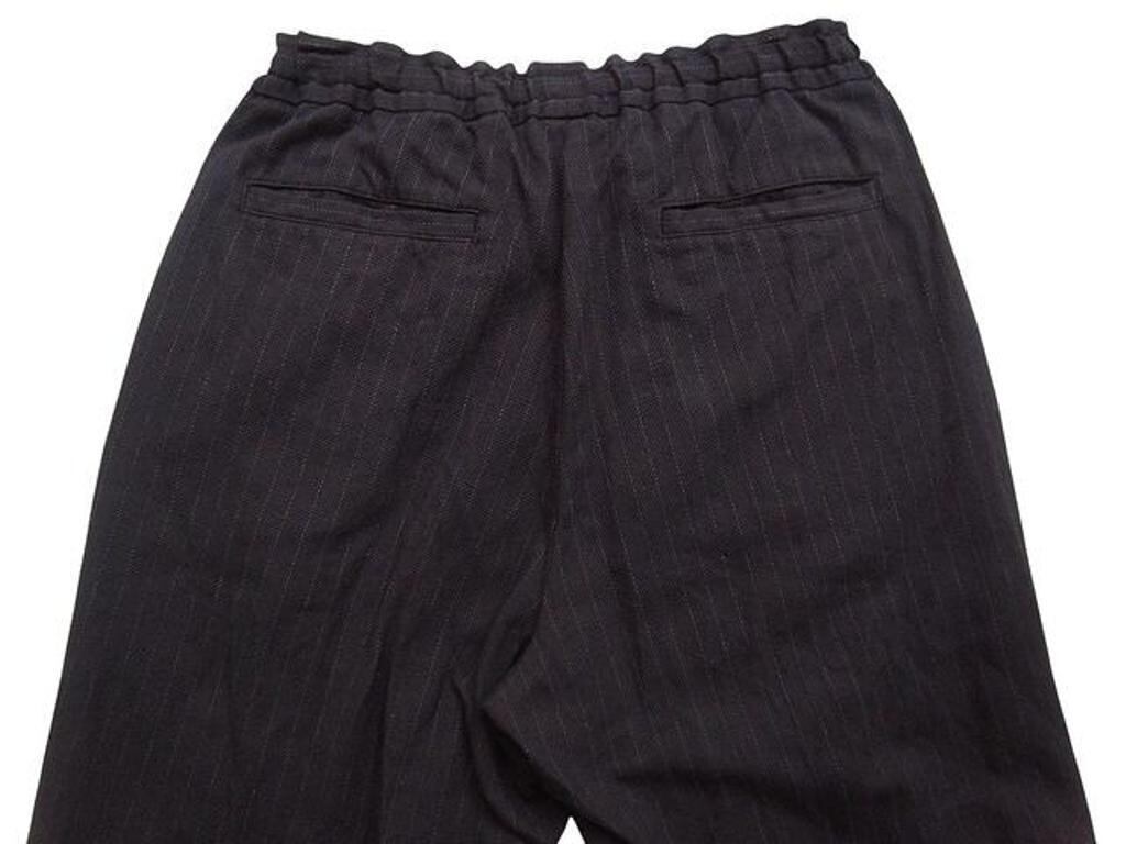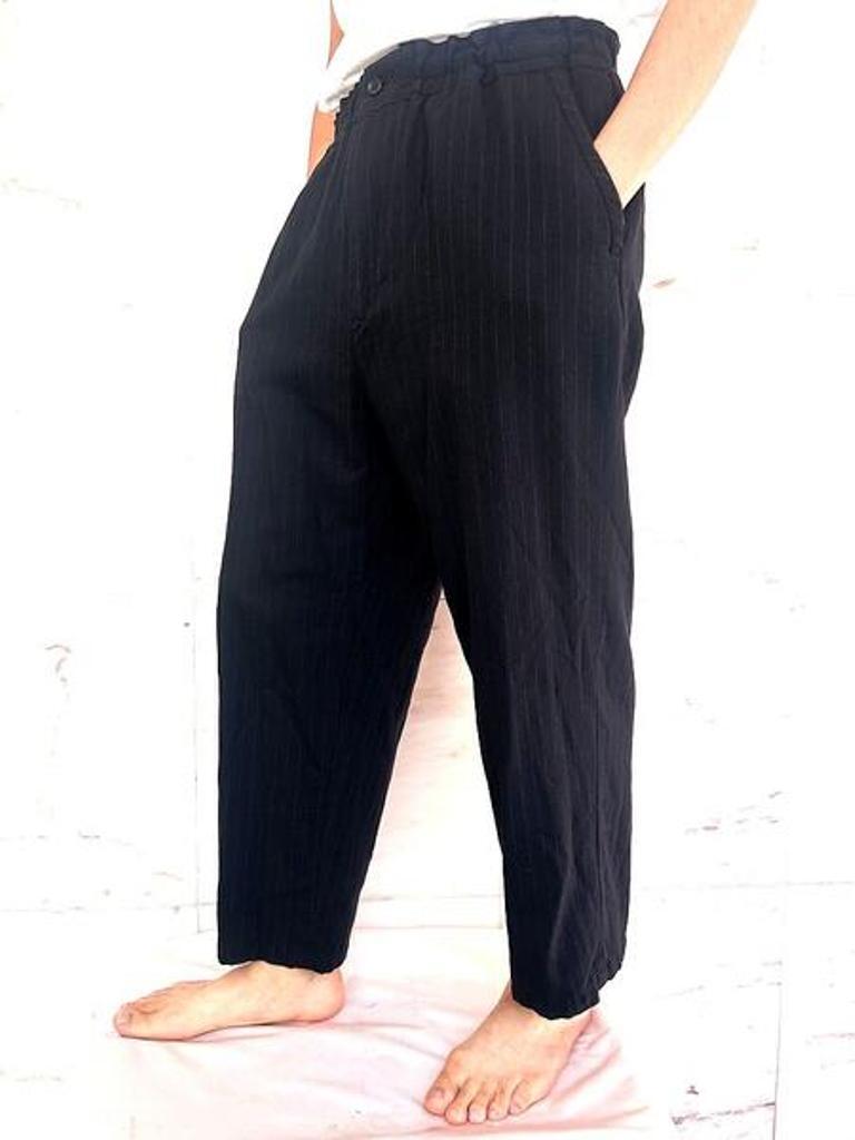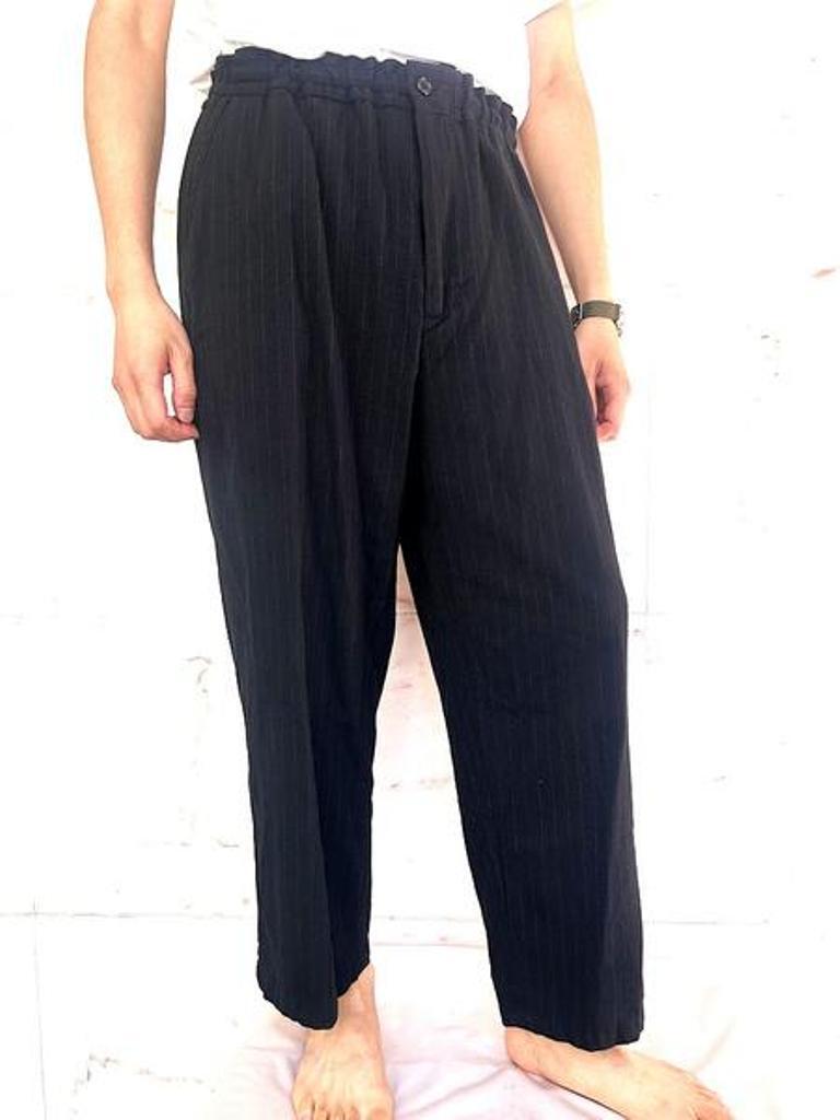 ウールとコットンで織り上げた風合い豊かな生地は、掠れたピンストライプが良い雰囲気です。ゆったりとしていてゆるやかにテーパード、余裕を感じる上品なシルエット。