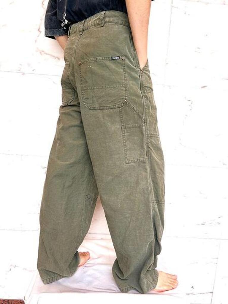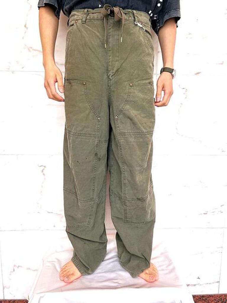 ■コットン生地のペインターパンツ。長年着用したようなハードなエイジング加工。サイド、バックポケット。スーパーバギーシルエット。