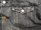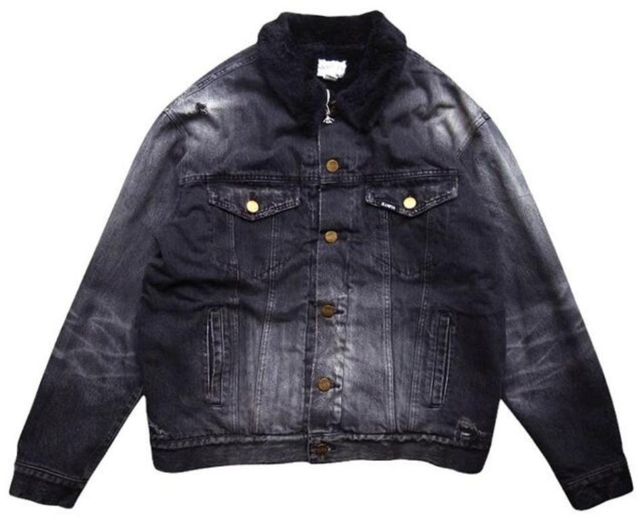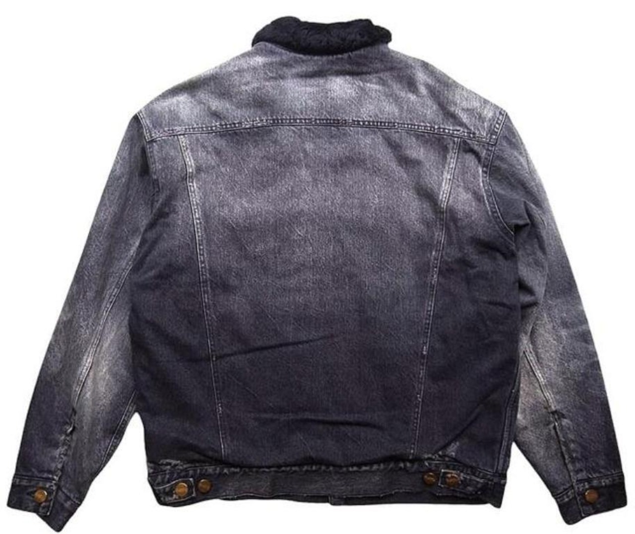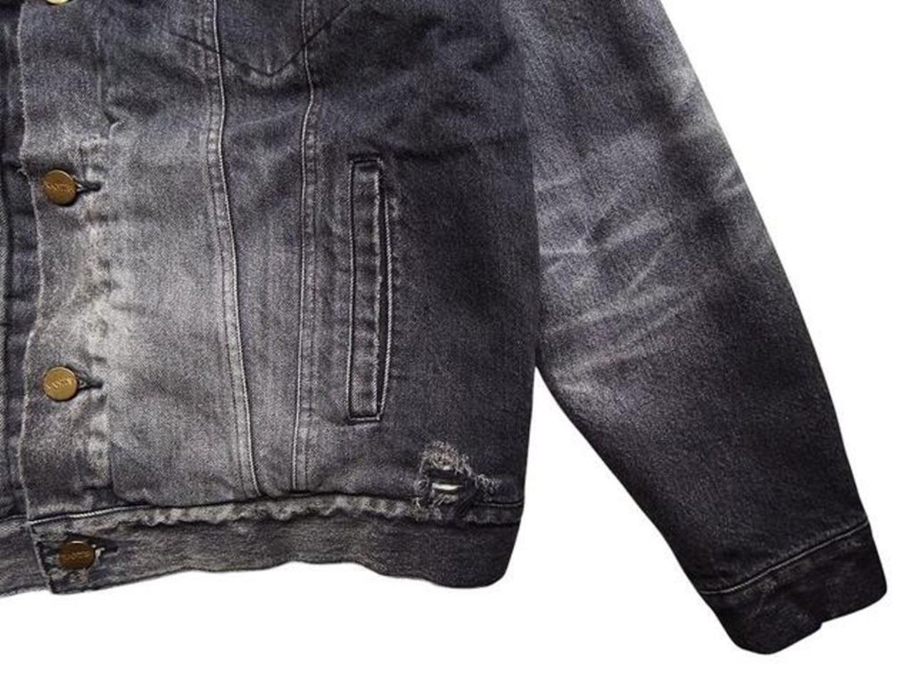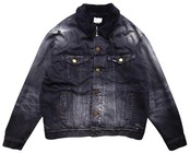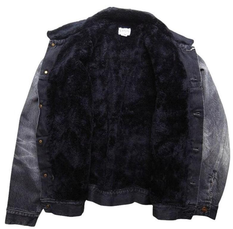 ■13ozブラックデニム生地使用の裏ボアジャケット。毛足の長いボア生地をライニングに使用。長年着用したようなハードなエイジング加工。ワイドフィット。ボタンアップ。胸ポケット。
