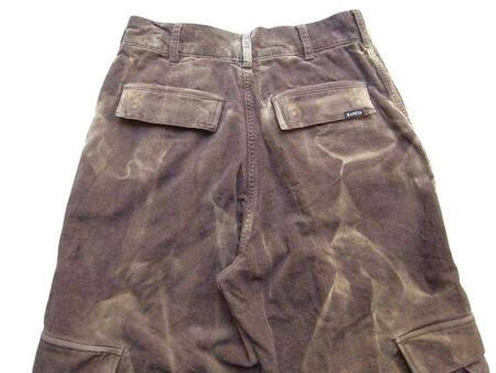 ■中畝のコットンコーデュロイ生地のファティーグ パンツ。日差しに長年さらされたような色褪せを再現する独自のエイジング加工。サイド、バックポケット。裾ドローイング。