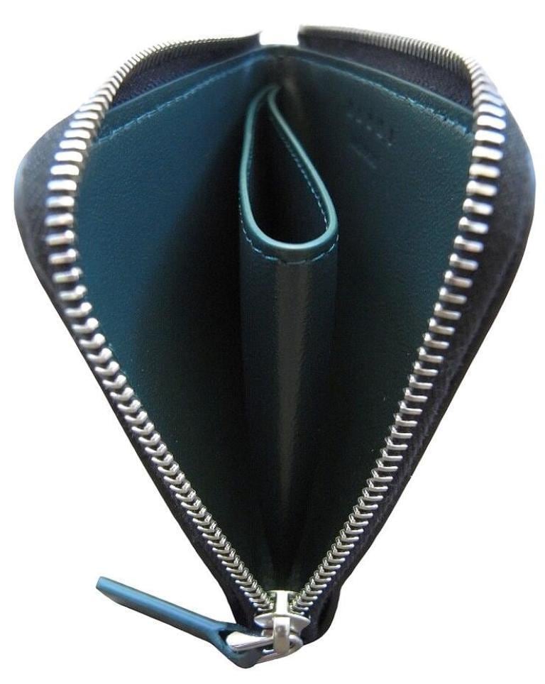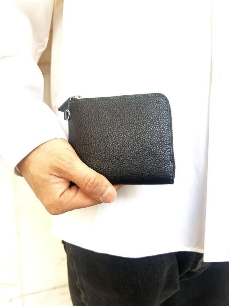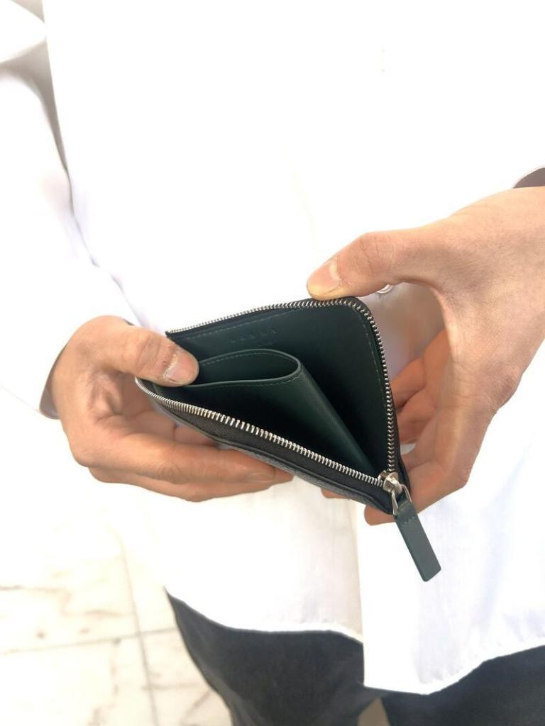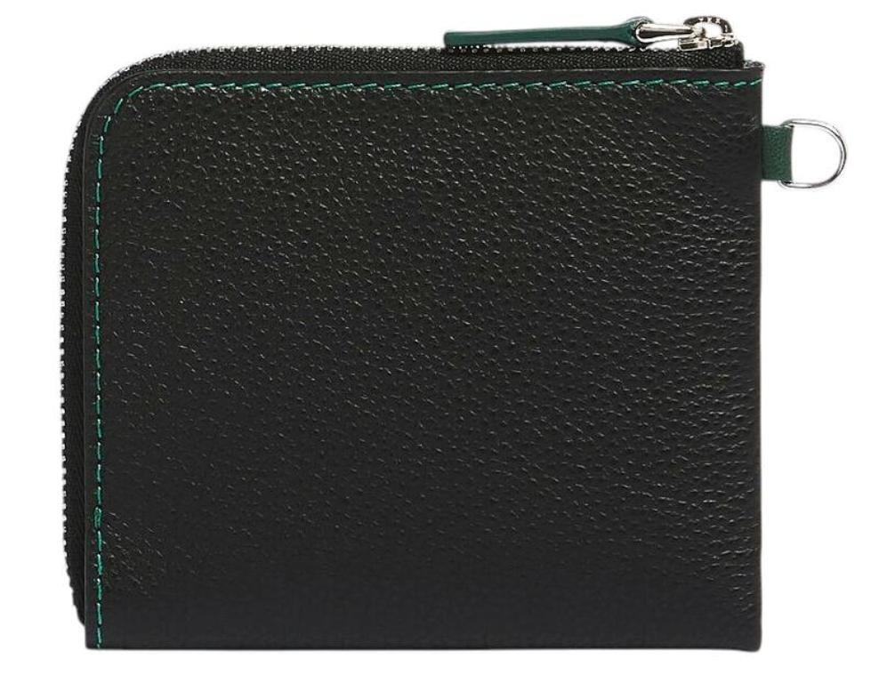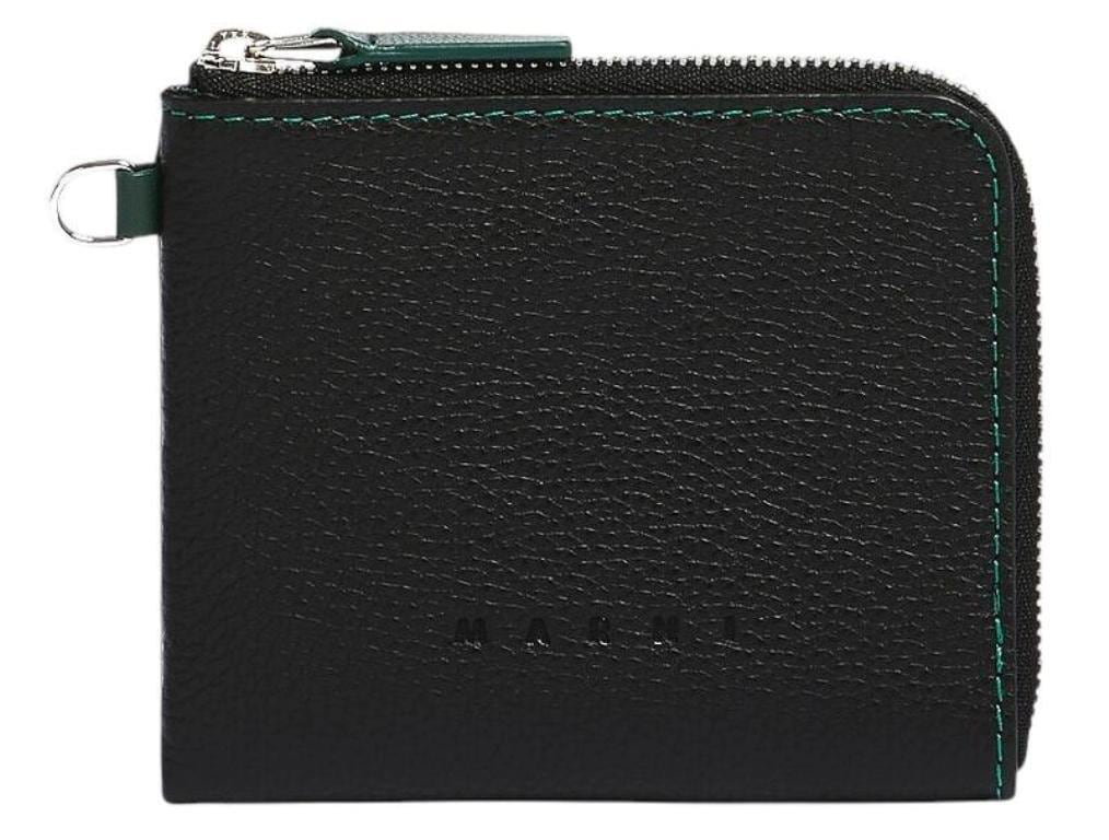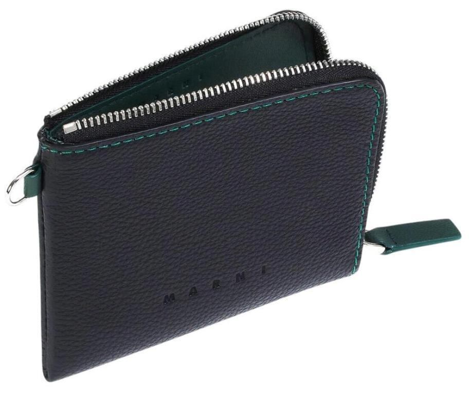 ●太く伸びたグリーンのサドルステッチがアクセントで、繊細なペブルド仕上げを施したカーフレザー製のラウンドファスナーウォレット。 内側にコントラストカラーのグリーンを配した、スリムながら収納力のあるデザイン。 同系色のホットスタンプ(型押し)”MARNI”ロゴにクリア箔コーティング。 サイドにDリングのディテール。