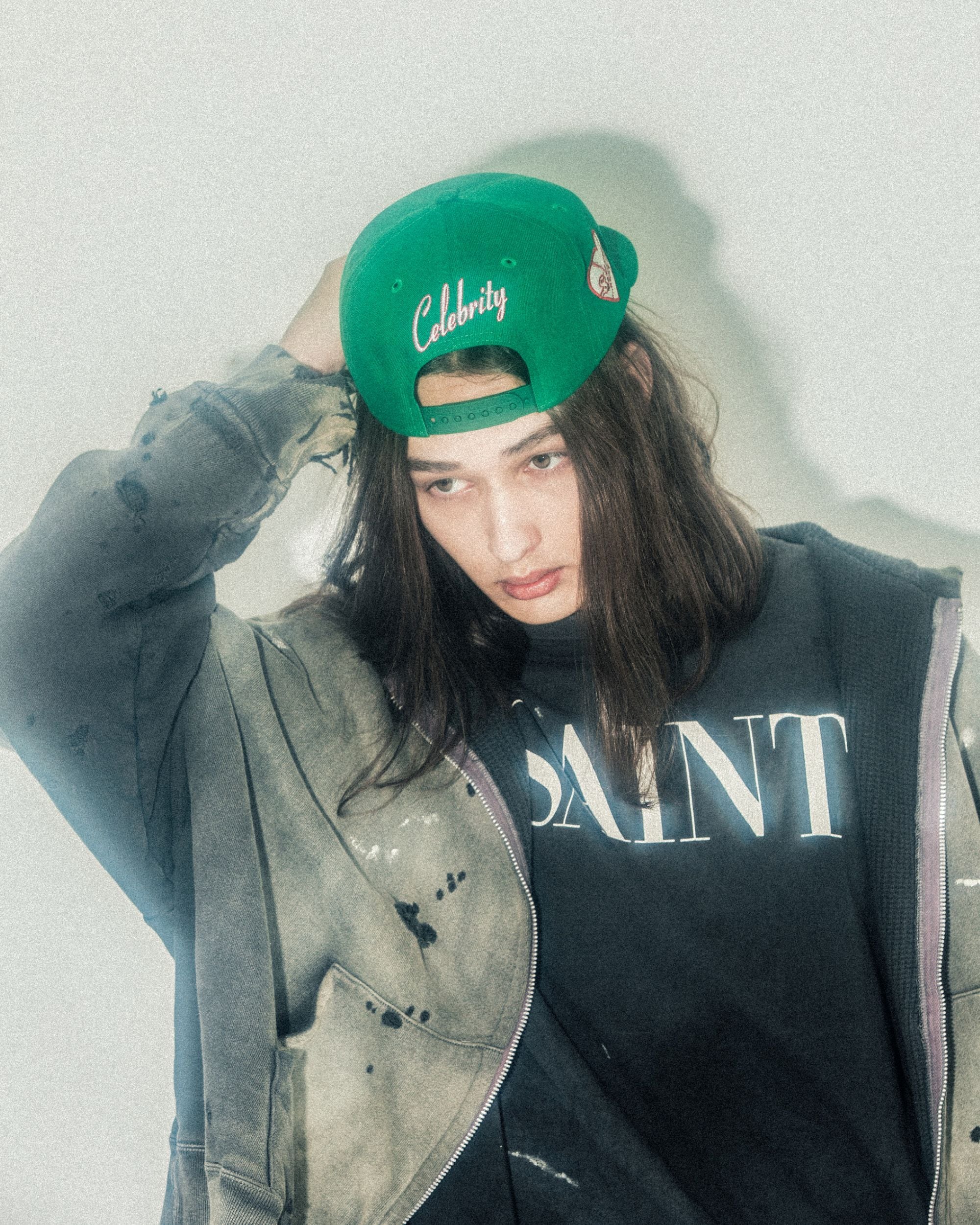 本作では、両ブランドのコラボレーションにおける定番モデル[Retro Crown 9FIFTY]をベースに、今季ならではの野球ボールモチーフのアイコンや「Celebrity」のロゴを刺繍でデザイン。フロントには本コラボレーションを象徴的するロゴを、NEW ERA®ならではの立体感のある刺繍で配置。さらに、つば部分には©SAINT Mxxxxxxのステッカーを配し、細部に至るまで両ブランドのアイデンティティを反映しています。
