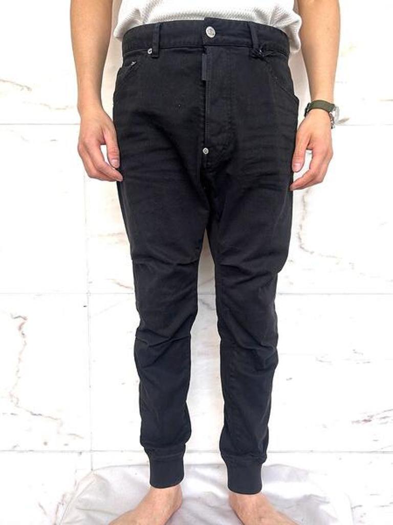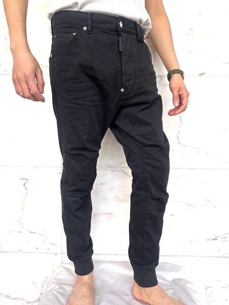 ●テンションの効いたストレッチブラックツイルを使用し、ウエストはイージー仕様のスピンドル入り、裾にリブを取り入れた日本限定のトラックツイルパンツ。あらゆるスタイリングに適応可能なD2スキニーなシルエットでモードなスタイリングからカジュアルなテイストまで色々なシチュエーションに合わせられるディースクエアード版ジョガージーンズ。ワンサイズアップでの着用をお勧め致します!!