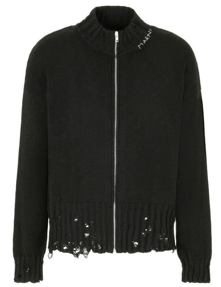 MARNI(マルニ) 【BLACK DISHEVELLED COTTON"DRIVER’S”KNIT SWEATER】 "ディシュベルド(デストロイ)”コットンニット"ドライバーズ”ニット ★BLACK★