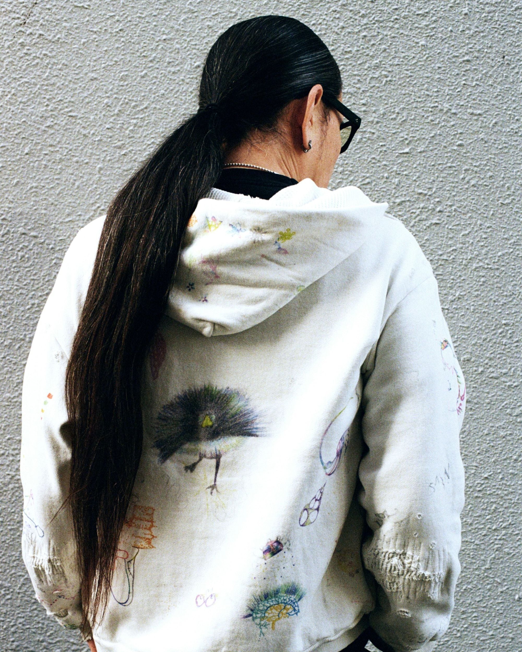 ©SAINT Mxxxxxxと、オーストラリア・メルボルン出身、現在は東京を拠点に活動するタトゥーアーティスト"Coco Star Sims"によるコラボレーションアイテムが、2月21日(土)に発売いたします。©SAINT Mxxxxxxのデザイナー両名と親交のある"Coco Star Sims"。本作のために描き下ろされた独創的かつエッジの効いたアートワークと、ブランドが追求し続けるヴィンテージ加工を融合。存在感を放つフーディーに仕上がっています。ビジュアルは、デザイナーの"Cali DeWitt"自らが撮影を担当しております。