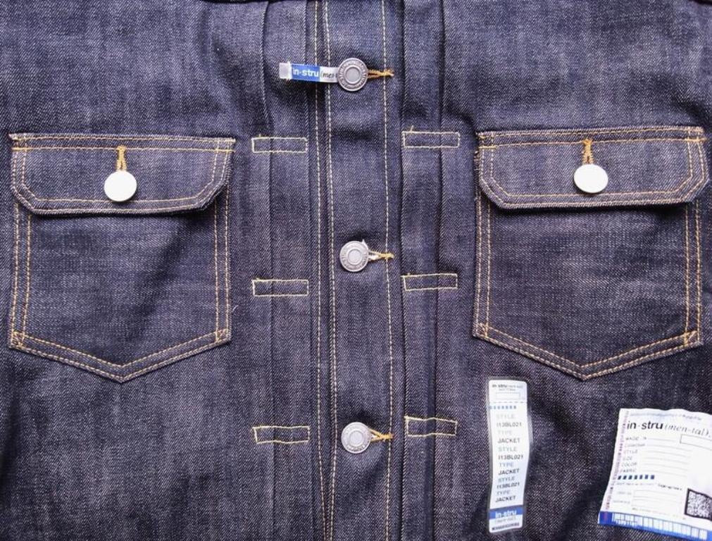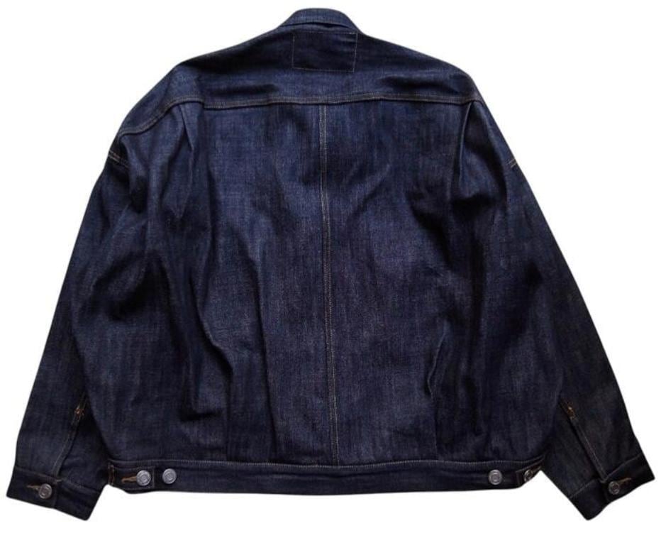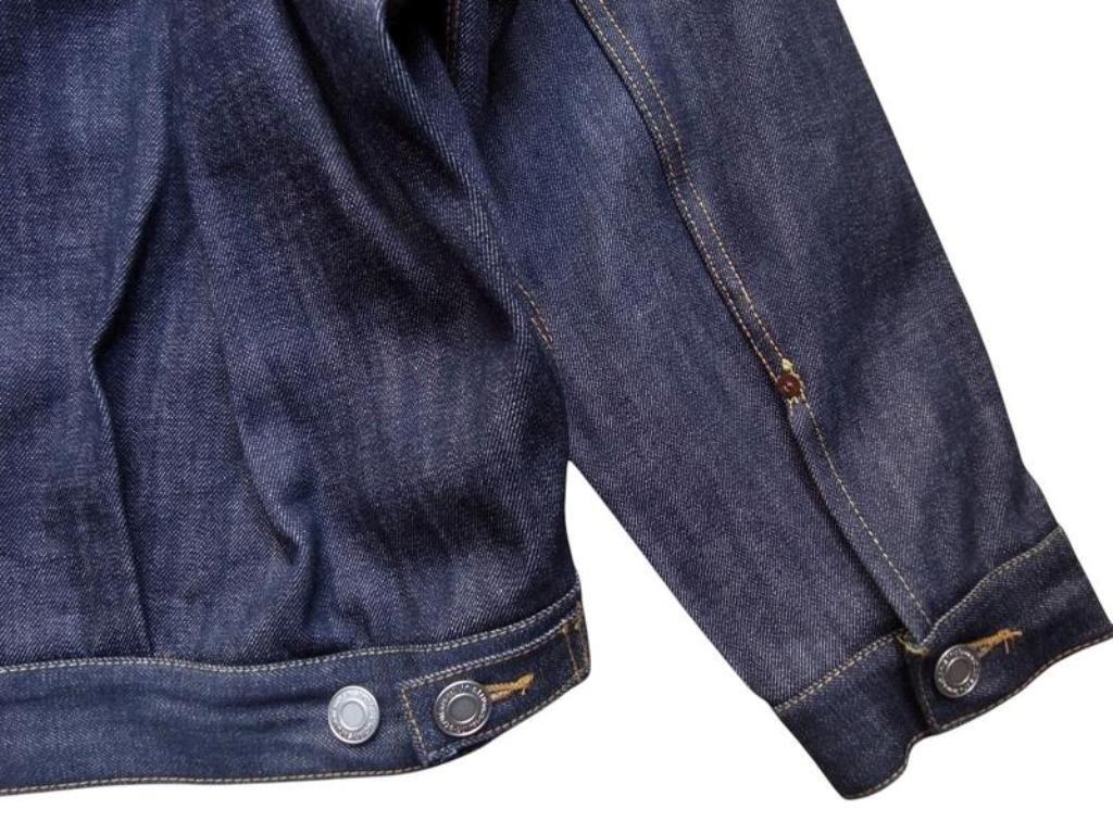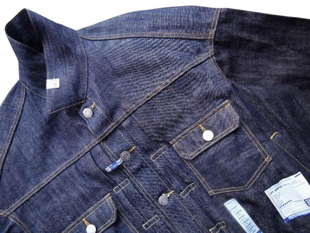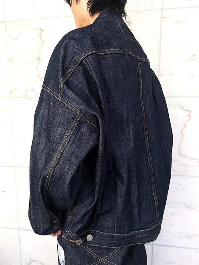●リジット(ノンウォッシュ)のセルビッジデニム(耳付き)を使用した、ストレスフリーな”Tバック”タイプのデニムジャケット。ボタンアップ。胸、サイドポケット。