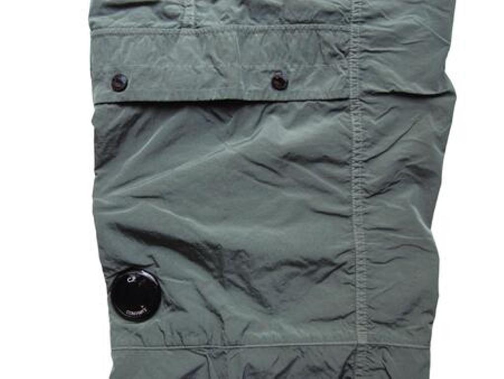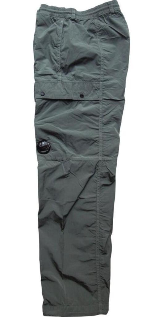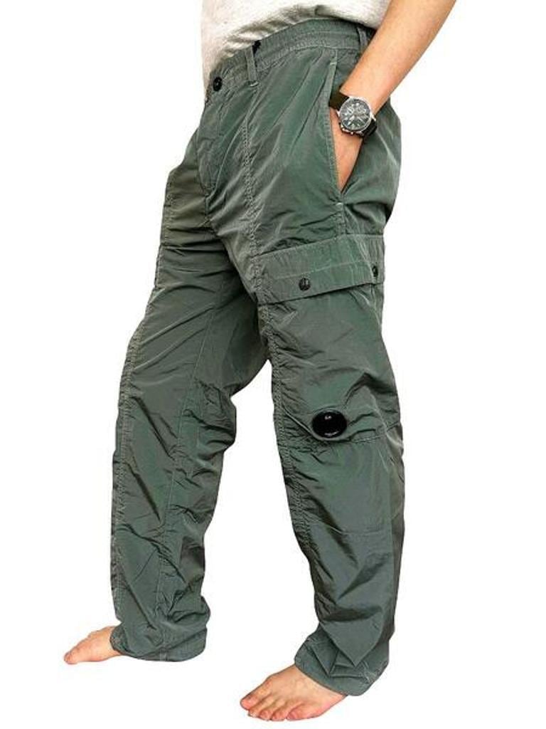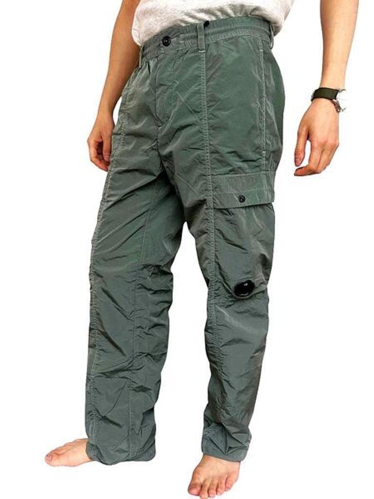 ●"Chrome-R"素材を使用したナイロンカーゴパンツ。”Chrome-R”は、生産廃棄物を回収・再生して新たな繊維に生まれ変わらせた光沢のある100%再生マルチフィラメントナイロンで、”Global Recycled Standard (GRS)”認証を取得しています。調節可能なドローストリングウエストバンド、ボタンとジッパーの二重開閉、ベルトループ、サイドポケットを備えています。機能的なディテールとして、スナップ留めのカーゴフラップポケットと象徴的な”C.P. Company”レンズ、ジッパー付きバックウェルトポケット、背面に施されたロゴラベルを備える。ガーメントダイ加工により独特の色彩の深みとトーンのバリエーションを実現し、経年変化と共に風合いが増す。レギュラーフィット。