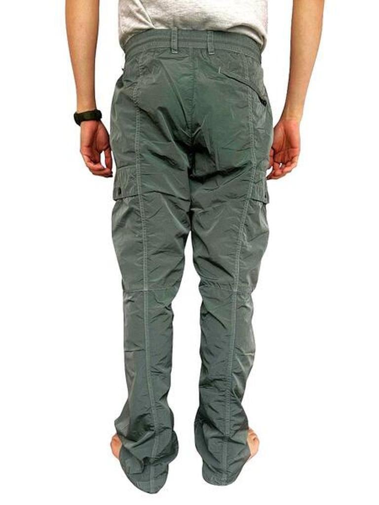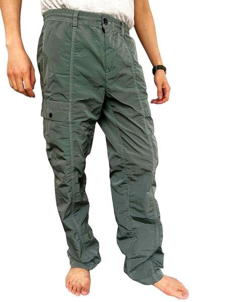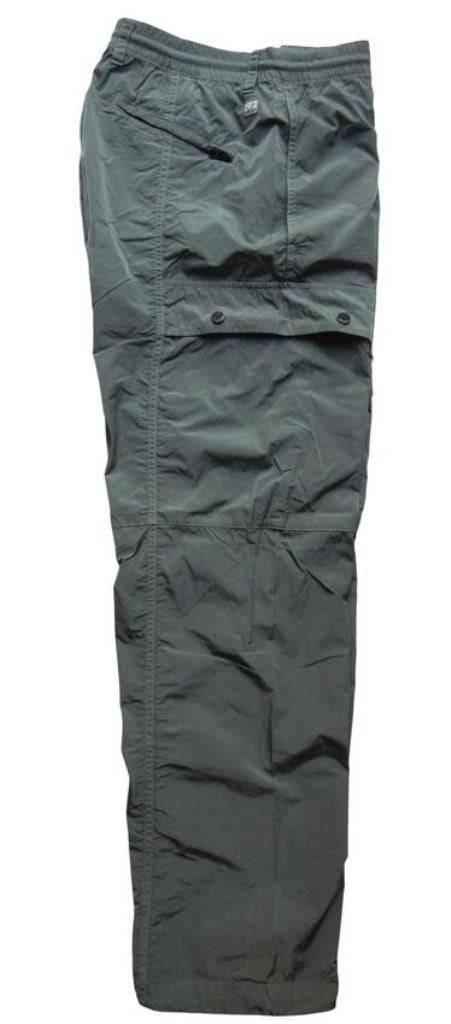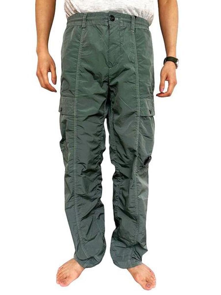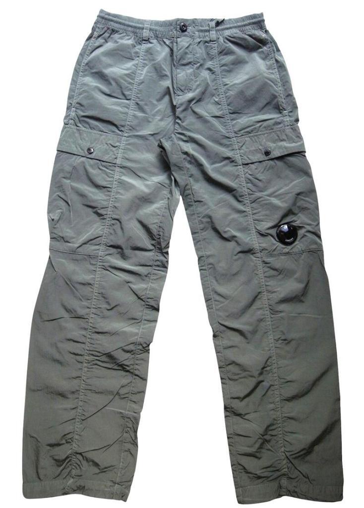 ●"Chrome-R"素材を使用したナイロンカーゴパンツ。”Chrome-R”は、生産廃棄物を回収・再生して新たな繊維に生まれ変わらせた光沢のある100%再生マルチフィラメントナイロンで、”Global Recycled Standard (GRS)”認証を取得しています。調節可能なドローストリングウエストバンド、ボタンとジッパーの二重開閉、ベルトループ、サイドポケットを備えています。機能的なディテールとして、スナップ留めのカーゴフラップポケットと象徴的な”C.P. Company”レンズ、ジッパー付きバックウェルトポケット、背面に施されたロゴラベルを備える。ガーメントダイ加工により独特の色彩の深みとトーンのバリエーションを実現し、経年変化と共に風合いが増す。レギュラーフィット。