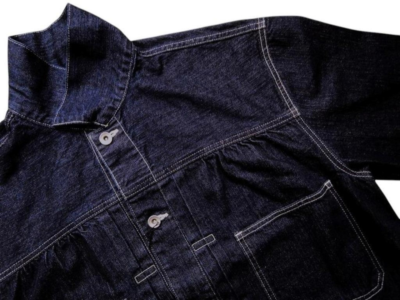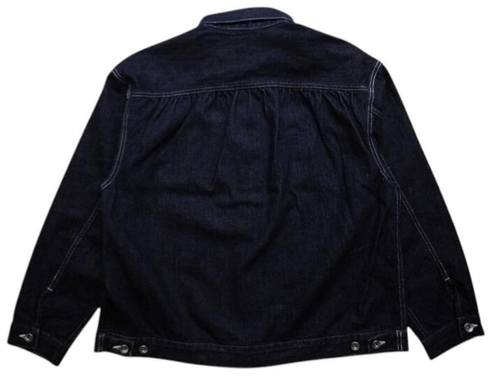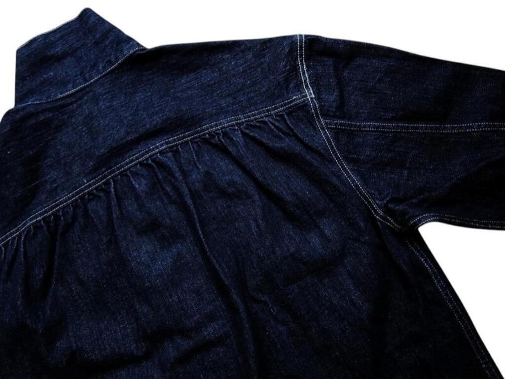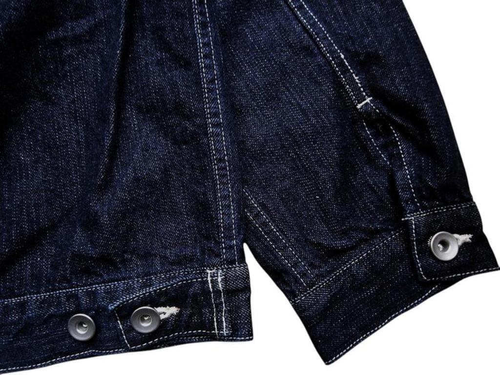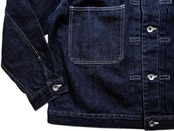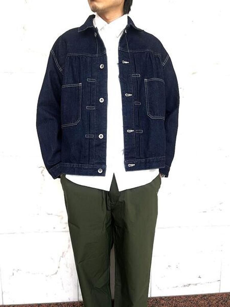 トレンドのデニム生地使用の”スタインベック デニム ジャケット”のカラーダークネイビー(ワンウォッシュ)バージョン。軽やかな着心地とは裏腹にヴィンテージさながらの味わいを楽しんでいただけます。12オンスとは思えない重厚感あるオリジナルデニムは、ショートピッチのスラブ糸(太さに強弱のある糸)をタテ糸にランダムに使用して織り上げました。デニムジャケット・ラブ!!トレンドの"DENIM JACKET"。ただのDENIM JACKETと侮るなかれ!!