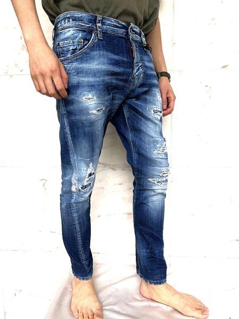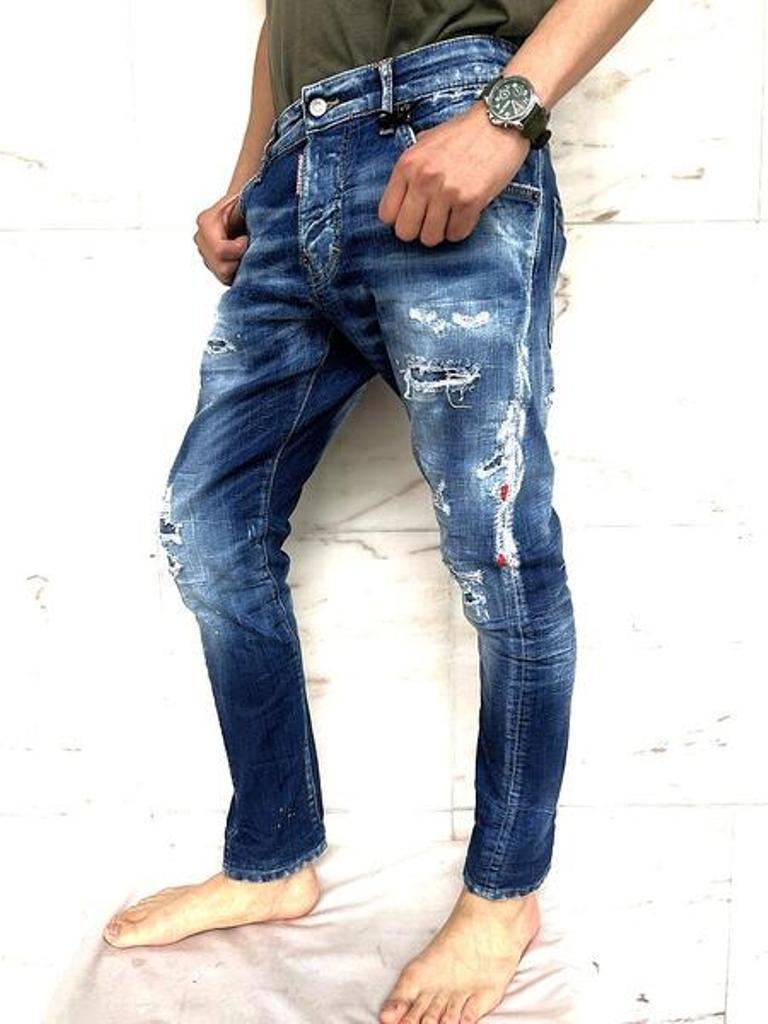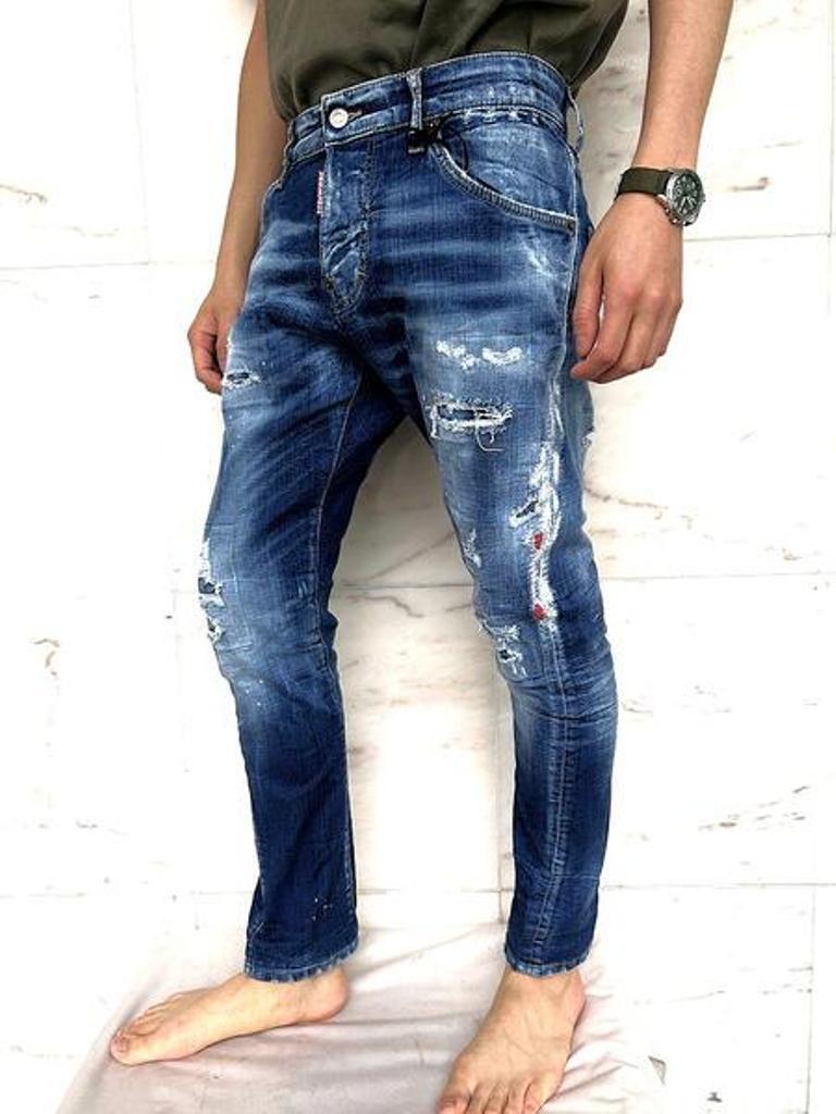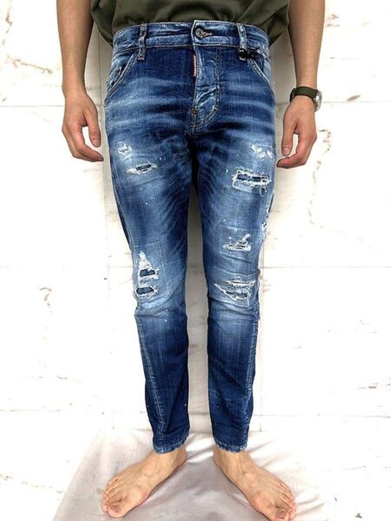 ●今シーズン初登場のツイストタイプのスリムジーンズ。立体的なツイストパターンを取り入れたスリムシルエットのジーンズ。脚のラインに自然な動きを与え、シャープさの中に奥行きを感じさせる一本。テンションの効いた12オンス"ストレッチデニム使用で程よくフィットする腰回りから裾にかけての細身設計がスタイルを引き締め、デニム素材ならではのハリと柔らかさが快適な穿き心地を実現。"MEDIUM SIDE BY SIDE WASH"と名付けられたお得意のクラッシュ&リペアー加工が◎。モードなスタイリングからカジュアルなテイストまで色々なシチュエーションに合わせられるディースクエアードのニュー美脚スリムジーンズです!!