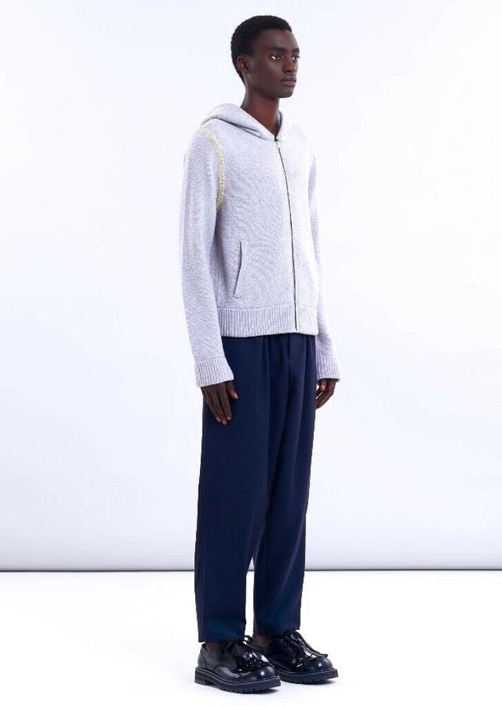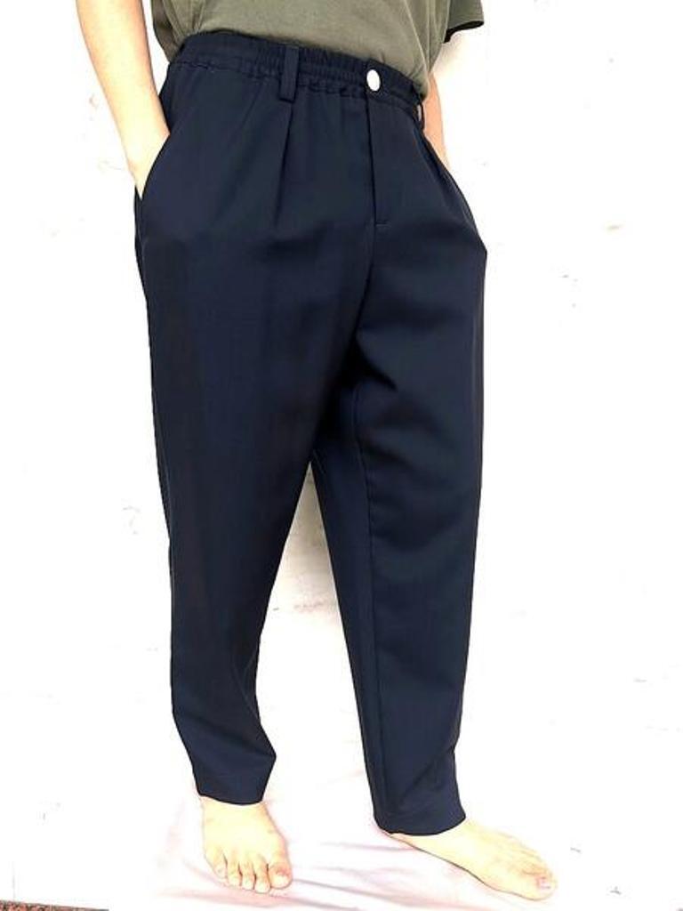 ●MARNI(マルニ)アイコンモデルのオールシーズン着用可能なトロピカルウール使用のブルーブラック(ディープブルー)カラーのウエストイージーワイドテーパードパンツ。カジュアルな装いからテーラータイプのジャケット等の相性も良く幅広く使用できるマルニ定番トラウザーズ。