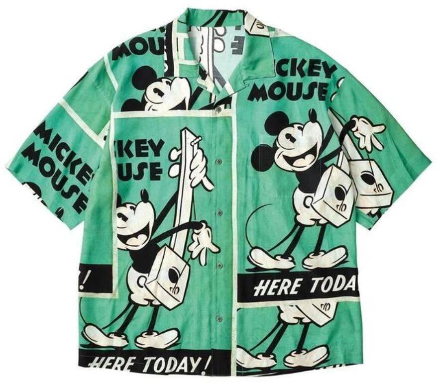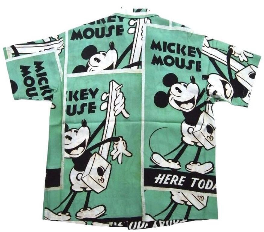 ◆春夏の定番PCアロハシャツ。今シーズンのディズニーコレクションはヴィンテージのミッキーマウス&ギターのポスターをレーヨン生地にプリントです。