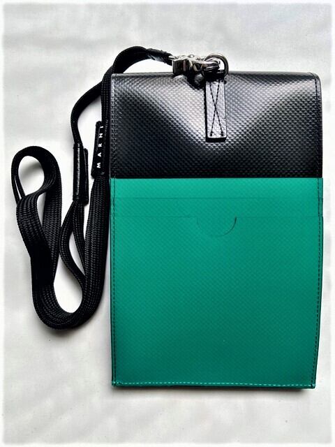 ●"MARNI"で絶大な人気を誇る"PVC"素材を使用したバイカラーの"iPhoneケース"。フラップタイプのコンパートメントにバックには3っのカードスロット付き。調節可能で取外し可能なナイロン製のショルダーストラップ付き。水に強く、特に手入れも不要な非常に便利な"PVC"素材は使い込むほどに表面が擦れて出てくる味をお楽しみ頂きながら、長くご愛用頂ける”マルニ”定番人気素材使用の"iPhone"ケースです。