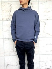 ●両サイドにコンシールファスナーを採用したポケット、ハイネックアジャスタブルフーディーを採用したストレッチスウェットパーカー。ストレッチ性に優れたライトフリース使用で二重になった袖カフスを捲るとリフレクティブプリント。所々にC.P.カンパニーらしいギミックが施されたスウェットパーカー。