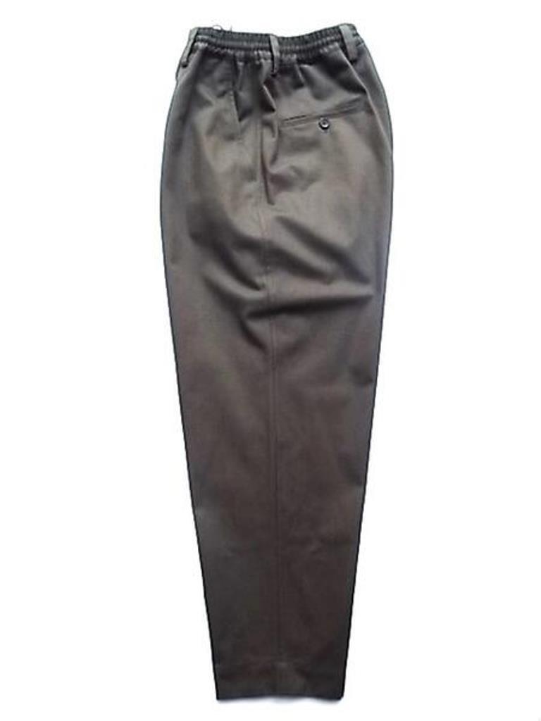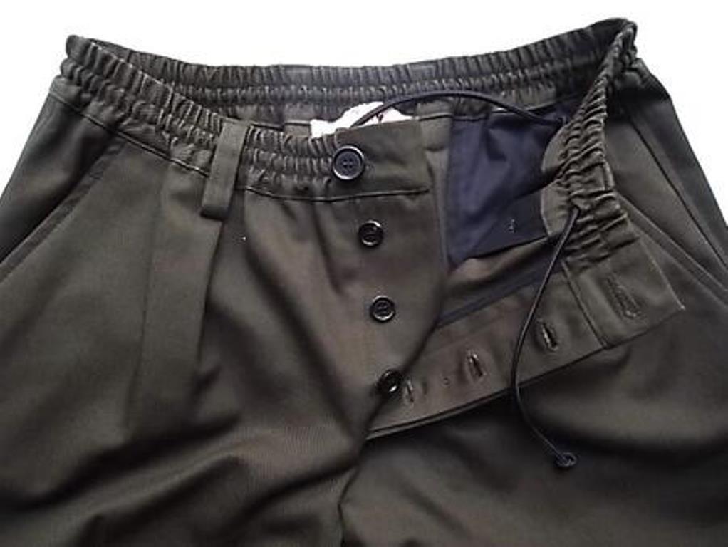●MARNI(マルニ)アイコンモデルのオールシーズン着用可能なコットンギャバジン使用のオリーブグリーンカラーのウエストイージーワイドテーパードパンツ。カジュアルな装いからテーラータイプのジャケット等の相性も良く幅広く使用できるマルニ定番イージートラウザーズ。