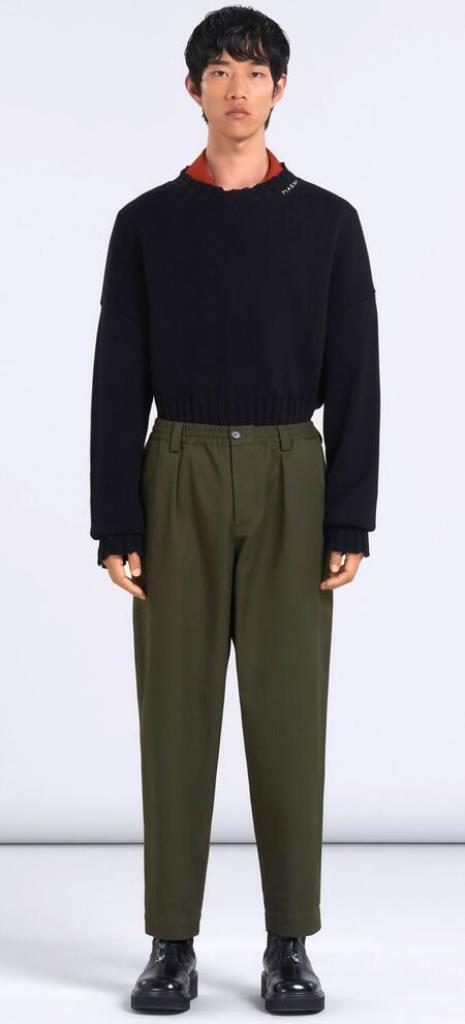 MARNI(マルニ) 【CROPPED TROUSERS IN GREEN GABARDINE】 グリーン ギャバジン クロップドパンツ(ルーズフィット) ★GREEN☆