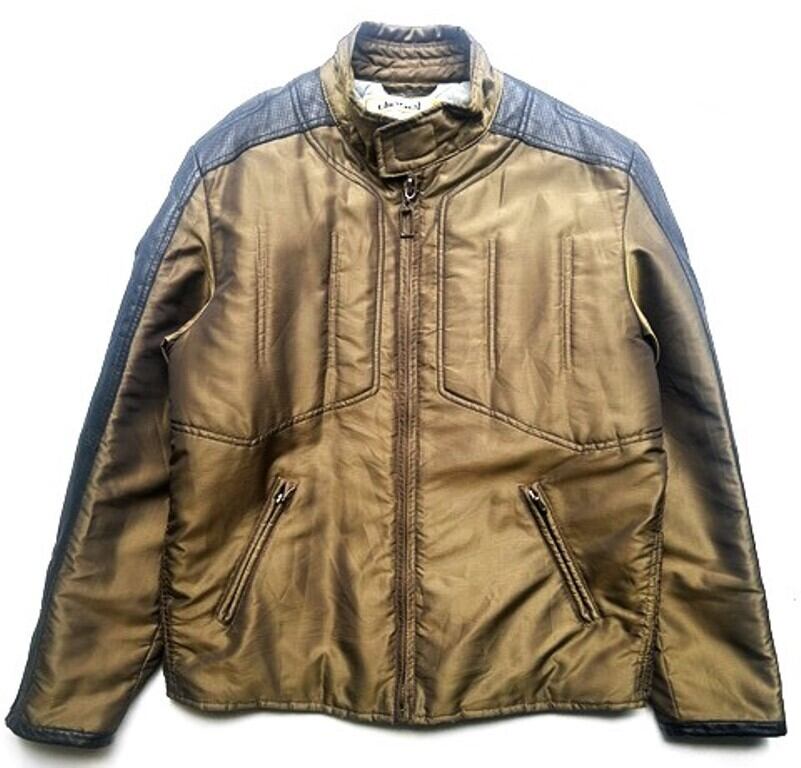 ●当時最先端を行ってたゲイやクラバーが着用し始めて、かなりぶっ飛んでいた90年代中頃の”DIESEL”(ディーゼル)のパンチングレザー使いのナイロンパテッドジャケット。ゴールド?玉虫色?のコーデュラナイロンにブラックのリアルパンチングレザーのコントラストがヤバイっす!!90年代のこの時代、今と同じくビッグシルエットがトレンドで、こちらサイズ表記が”Mサイズ”でも今の”XLサイズ”くらいありますので、今っぽく着用が可能です。この頃、まだ日本で取り扱っている店舗って当時の代理店だったパンドラ(現ディーゼルジャパン)さんの直営店しかなくて、かなり品薄&高価(このモデルで余裕で10万オーバーだった記憶あり)で、海外出張時に探し当てて購入していた記憶があります。しかし、あれから30年かぁ~、こちらもやはりアーガイブ入り確実なアイテムですのでお見逃しなく!!