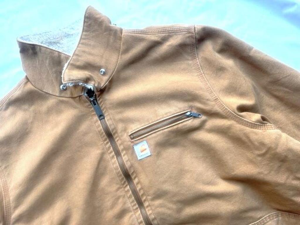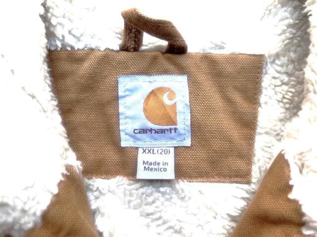 ●ハリウッドスターやファッションアイコンな人達の着用で急に世界的にトレンド&プレ値へとなったアメリカ発のワークブランド”Carhartt(カーハート)”のコットンキャンバスジャケット。こちらのモデルは裏地にホワイトボアを使用したシェルパダックジャケット。裏ボアタイプ、ベストだとチラホラ出てきますがジャケットタイプは見かけないのでレア物なのかもしれませんよ~!!サイズはユースサイズのXXL(20)という表記ですが、アダルトサイズのLくらいのナイスサイズ。人気のカーハートブラウンダック地で比較的発見し易いと思っていたら、ここんところカーハートモノは入荷の度に価格がどんどん上書きされ、今後入手が困難になる事は間違いのないリアル進行形ヴィンテージアイテムですのでお見逃し厳禁ですよ!!