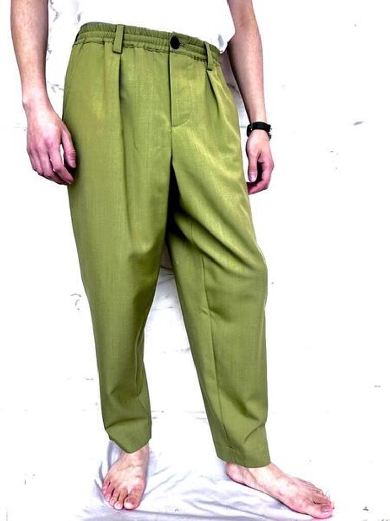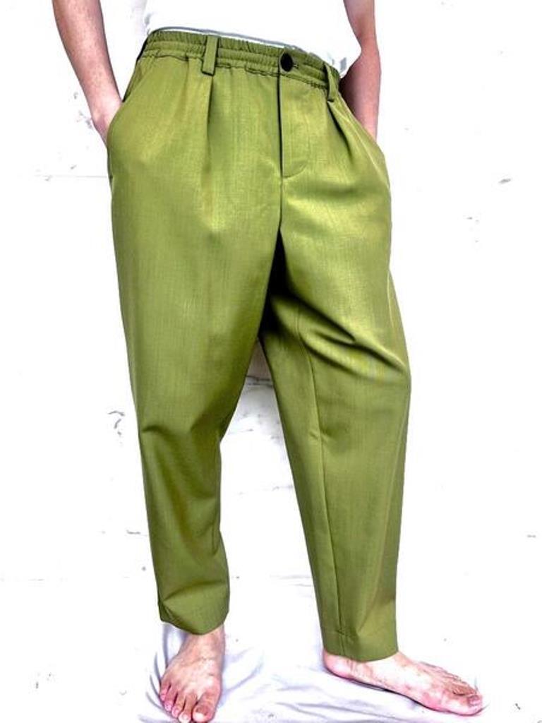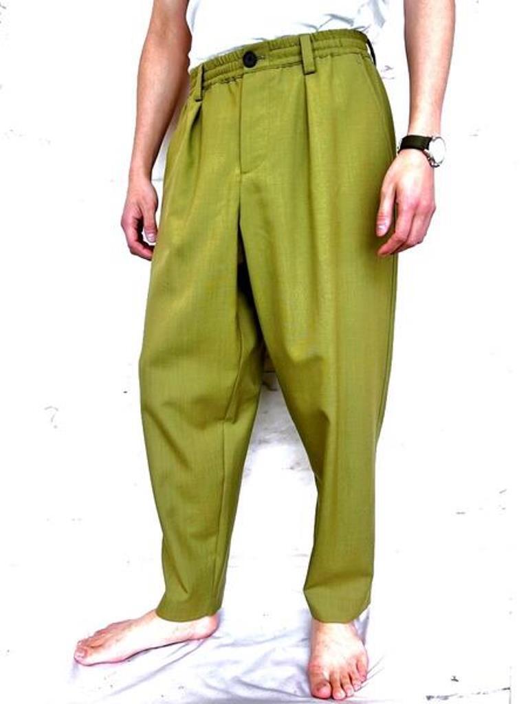 ●MARNI(マルニ)アイコンモデルのオールシーズン着用可能なトロピカルウール使用のグリーンカラーのウエストイージーワイドテーパードパンツ。カジュアルな装いからテーラータイプのジャケット等の相性も良く幅広く使用できるマルニ定番トラウザーズ。