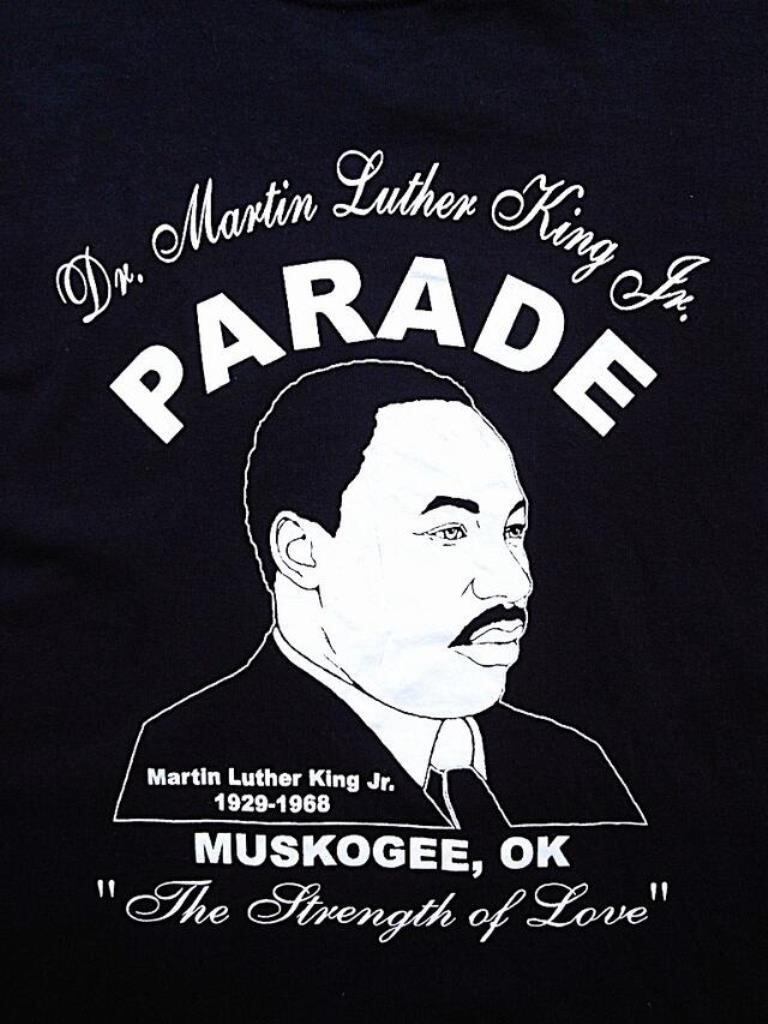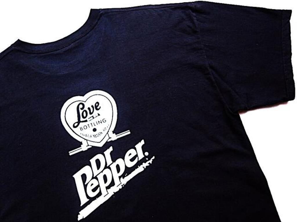 ●キング牧師生誕祭パレードティーby”オクラホマ州マスコギー”バージョン。1月の第3月曜日、キング牧師の生誕を記念する米国の祝日と言う事で全米各地で行われるキング牧師生誕祭パレード。バックにはパレードのスポンサー企業、地元マスコギーの飲料水ディストリビューター”The Love Bottling Company”社のロゴ&ドクターペッパーのロゴプリントが◎!!ブラックパワー、”ブラザー系”プリントティーにはコレクターが多数いて人気のアイテムです。