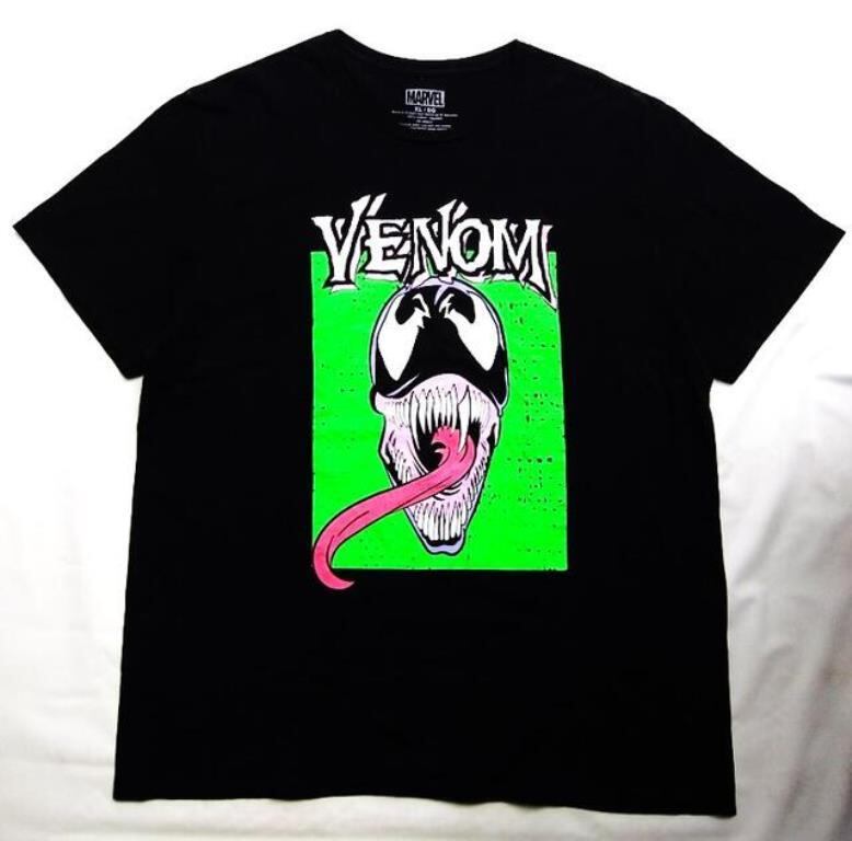 ◆”Marvel Comics(マーベル・コミック)”のダークヒーロー、”VENOM(ヴェノム)”オフィシャルティーシャツ。スパイダーマンの敵って認識していたのですが、ライバルでダークヒーロー扱いなんですね。今ではスパイダーマンより人気ありですね。こちらのヴェノムもグットサイズのXL。値上がる前の今がチャンスです!!