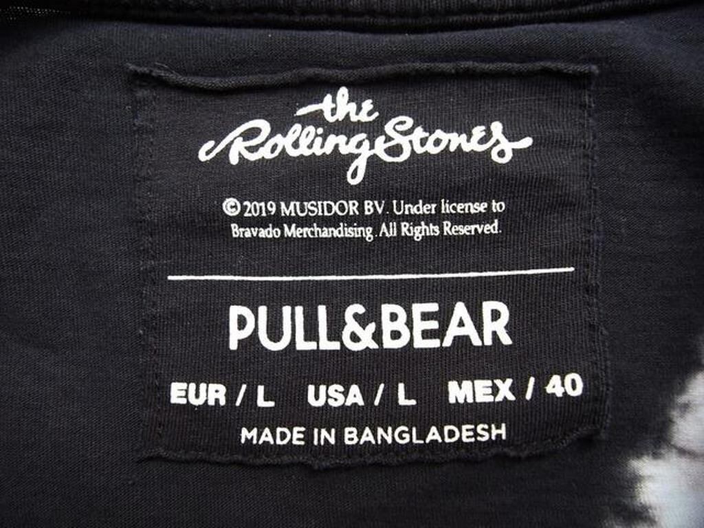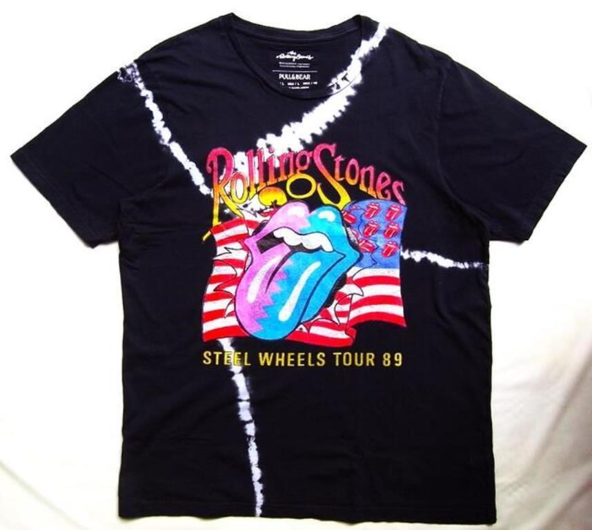 ●1962年から半世紀以上1度も解散することなく第一線で活躍を続ける、ロック界の最高峰に君臨するバンド”The Rolling Stones(ローリングストーンズ)”。ブラックボディーを稲妻のように抜染し、その上に1989年のアメリカツアー”STEEL WHEELS”のロゴを復刻プリントしたスペインのカジュアルブランド"PULL & BEAR"社オフィシャルティーシャツ。ちなみに1990年、日本初来日時の”東京ドーム10 days”はこの”US STEEL WHEELS 89”を基にしたセットリスト。そんなストーンズモノに”流行り廃り”はアリマセン!!