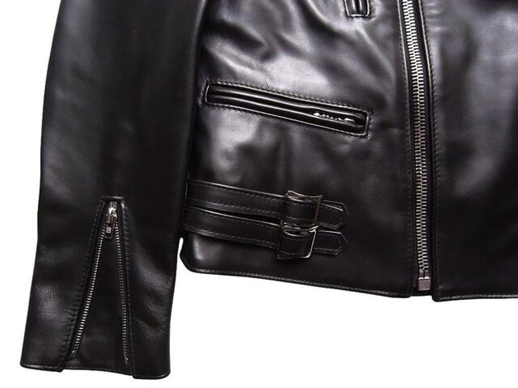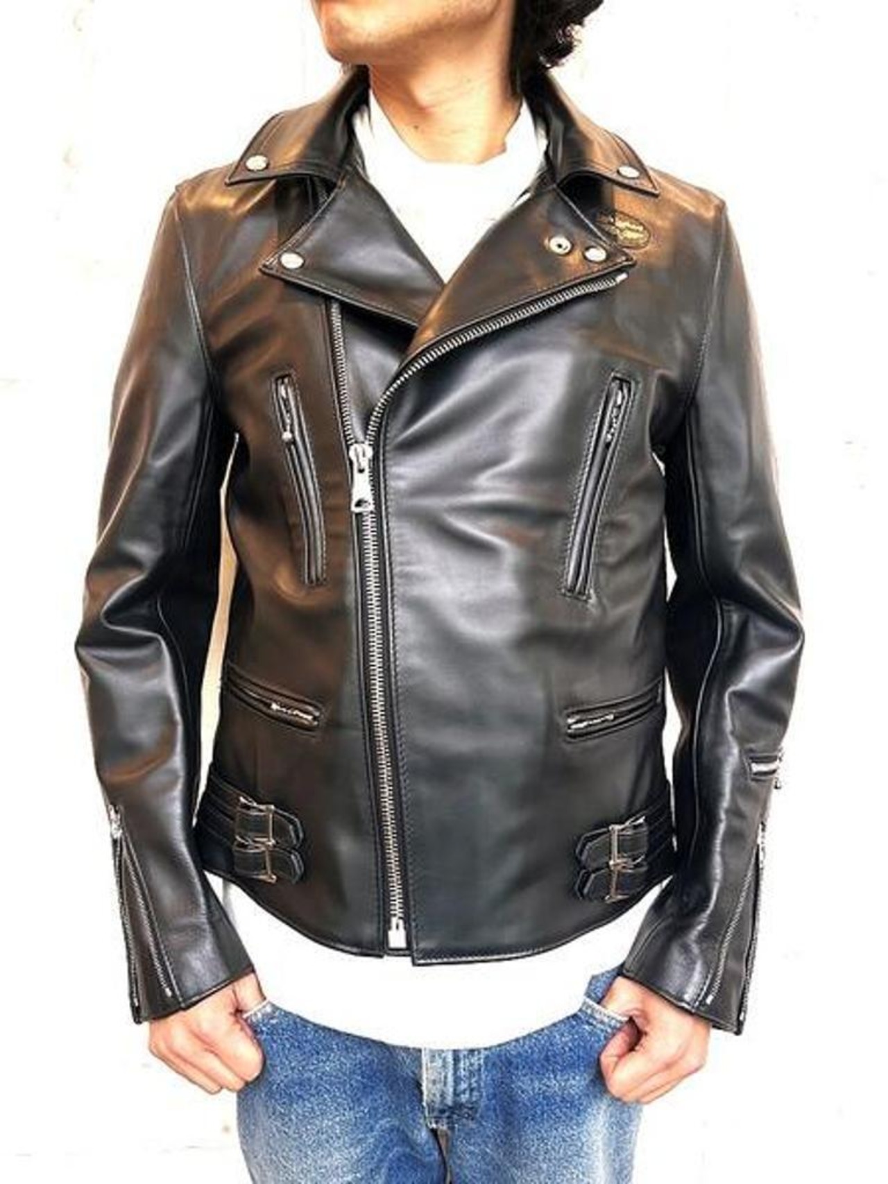 ●中古市場で高騰し続けている"Lewis Leathers LIGHTNING"は1960年から生産されてきた”Lewis Leathers”のアイコンモデルの”No.391”タイトフィットライトニングは、ダブルストラップ(前身頃、前方に向かって引張る)のアジャスターベルトが最もルイスらしいダブルブレストのライダースジャケット。通常モデルと違いタウンユースにも対応し易いタイトフィットシリーズは通常モデルより着丈を長くし、アームホールも細めな設定で、実用性・スタイリングを向上させたライダージャケット。両胸・脇の使いやすい角度に配されたボールチェーン付きの4ヶのジップポケット、鋭角なバックヨークとアメリカンタイプに有りがちなエポレットを排除したスタイル。また袖上に付いた袖口のジッパー、左袖のチケットポケット、そしてライトニングらしいキルティングが施されたレッドコットンの裏地がルイスならではのロンジャン(UKライダース)でルイス入門編として大推薦したいシンプルなダブルレザーライダースジャケットです。
