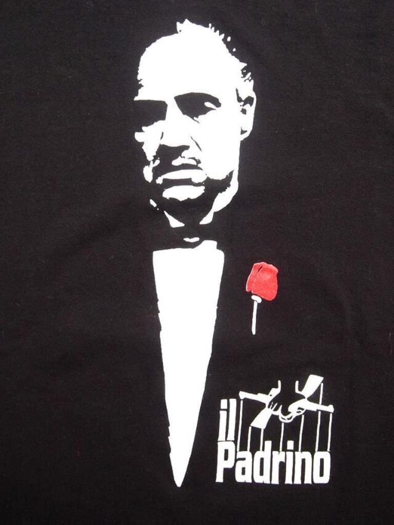 ◆巨匠”フランシス・フォード・コッポラ”作の1972年公開”The Godfather(ゴッドファーザー)"ティーシャツ。マーロン・ブランド演じる”ドン・コルレオーネ”に赤いバラが◎。”il padrino(イル パドゥリーノ)”は、ゴッドファーザーのイタリア語題でマフィアのボスという意味らしいです。ムービーティー、高騰が激しくなってきております。この辺も今がチャンスですよ!!