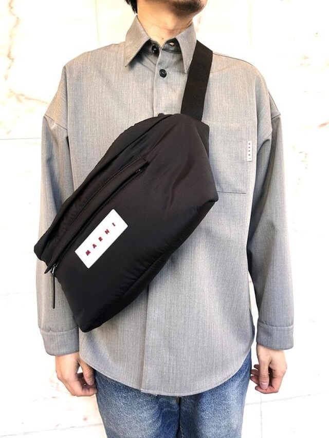 MARNI(マルニ) 【LOGO PATCH PUFF LARGE SHOULDER BELT BAG】 マルニ ロゴパッチ パフ ラージ ショルダー ベルトバッグ ★BLACK★